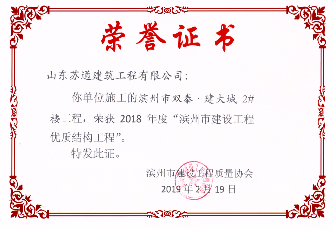 山東蘇通建筑工程有限公司,創建于2009年8月。目前擁有房屋建筑工程施工總承包壹級、市政公用工程施工總承包叁級、水利水電工程施工總承包叁級資質,同時還具有建筑裝修裝飾工程專業承包貳級、消防設施工程專業承包貳級、鋼結構工程專業承包叁級、建筑機電安裝工程專業承包叁級等專業承包資質。 公司總部坐落于山東省濱州市濱城區黃河十二路877號,現有辦公面積約2000平方米,機構設黨支部工會辦公室、總經理辦公室、綜合辦公室、工程管理部、經營預算部、資產財務部、材料設備部、運行管理部、法律事務部等多個職能部門。公司管理體系已經通過了GB/T 19001及GB/T 50430質量管理體系、GB/T 24001環境管理體系(EMS)、GB/T 28001職業健康安全管理體系(OHSMS)等體系的認證。 公司承建完工了濱州市建大教師之家、建大清怡苑、香格里拉水岸綠城住宅小區、雙泰建大城、曲阜崇德公館住宅小區、北海新區御景藍灣住宅小區、沾化德榮國際華城住宅小區、惠民橄欖郡住宅小區等工程項目,目前在建工程項目有:濱州市頤高國際電子商務產業園住宅小區項目、濱州市東盛國際項目、高新區建大中央華府住宅小區項目、濱州市融匯新里程住宅小區項目、濱州市建大秦皇壹號住宅小區項目、濱州市森林花...